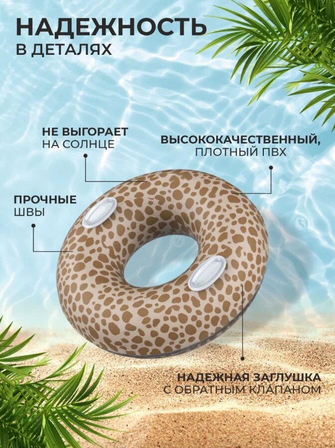 Надувной круг для плавания 116 см, с ручками, Африка Леопард 2 399 ₽