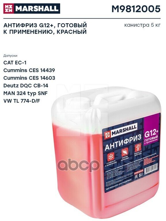 M9812005_антифриз Marshall G12+, Готовый К Применению, Красный, Канистра 5 Кг. (M9812005) MARSHALL арт. M9812005 1 742 ₽
