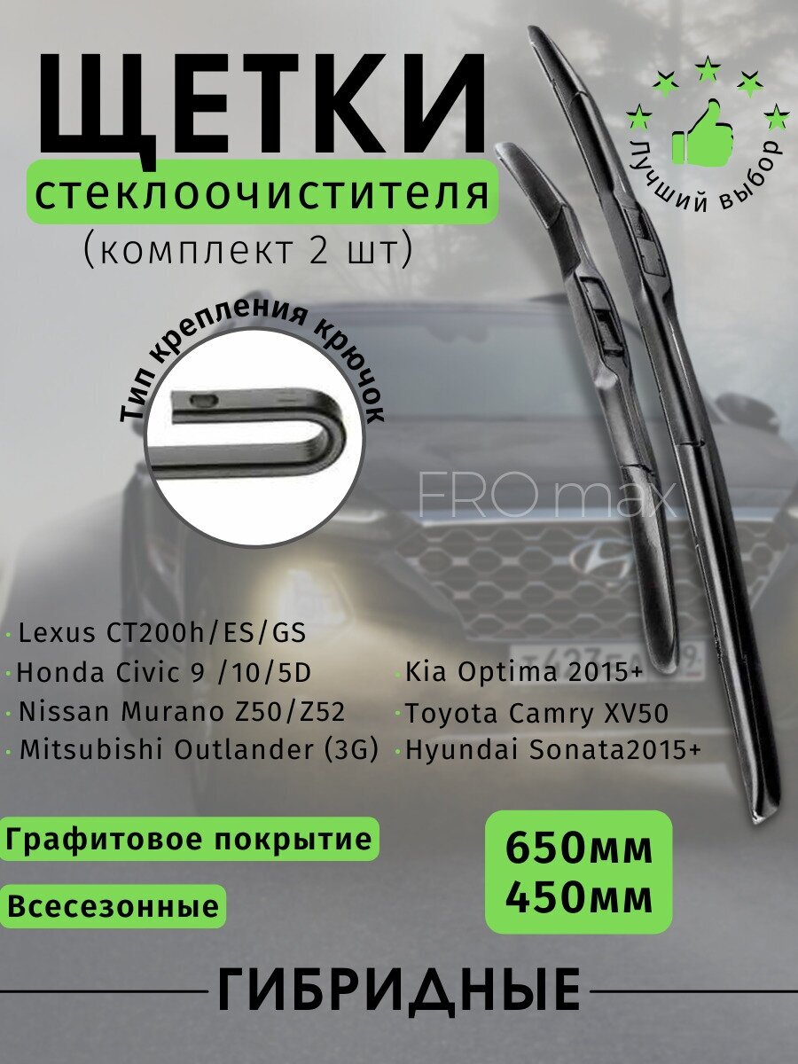 Щетки стеклоочистителя 650 мм и 450 мм, 2 штуки , гибридные дворники , ,Хендай Соната , Митсубиши Оутлендер,Камри,Хонда Цивик ,Лексус, Мурано информация: