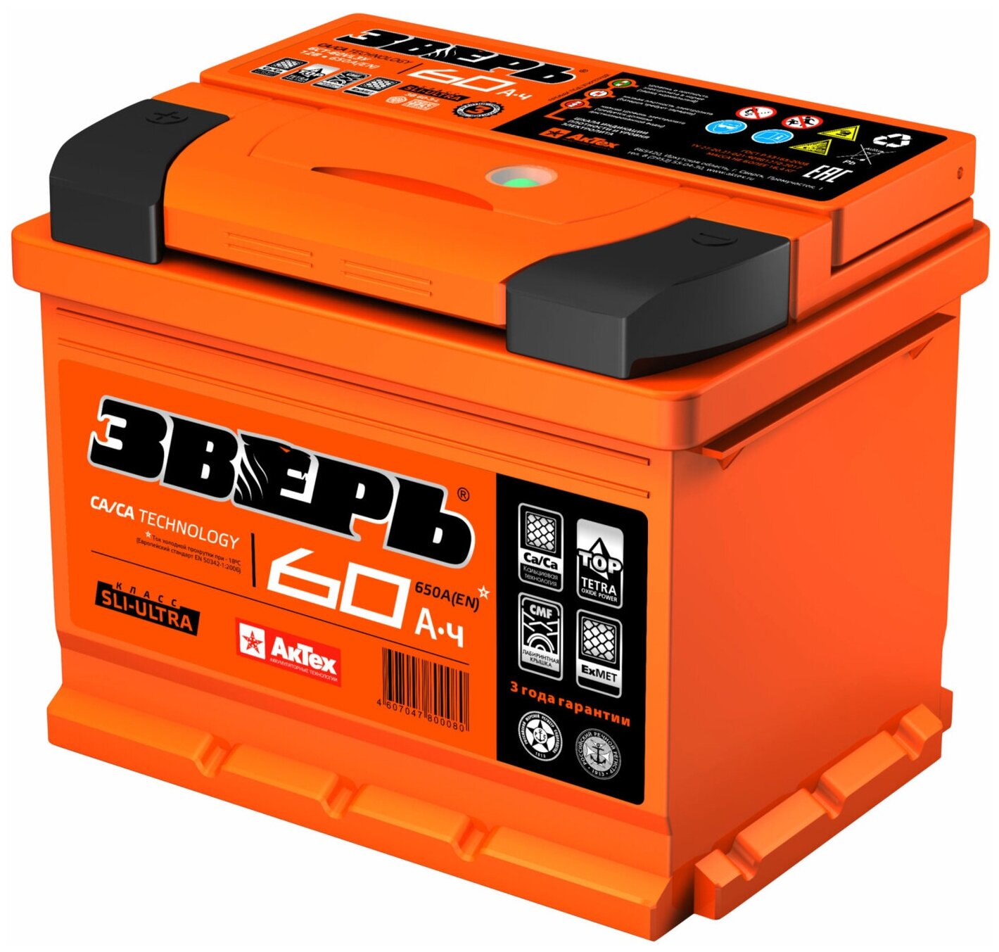 Отзывы на Аккумулятор зверь са/са 60 а/ч 242-175-190 en620, зверь, zvk 60-3-l