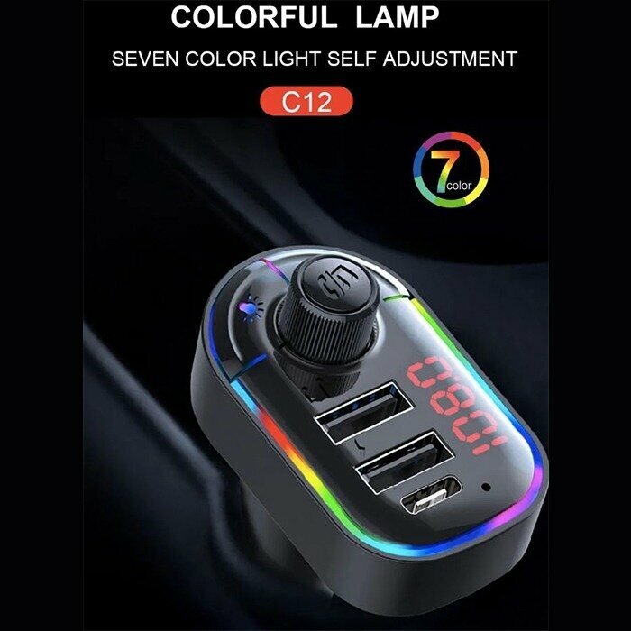FM трансмиттер Bluetooth с RGB подсветкой / Модулятор автомобильный / Адаптер быстрой зарядки с 3 USB 3.1 A TDS-13