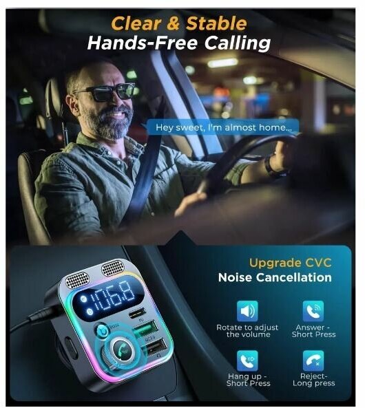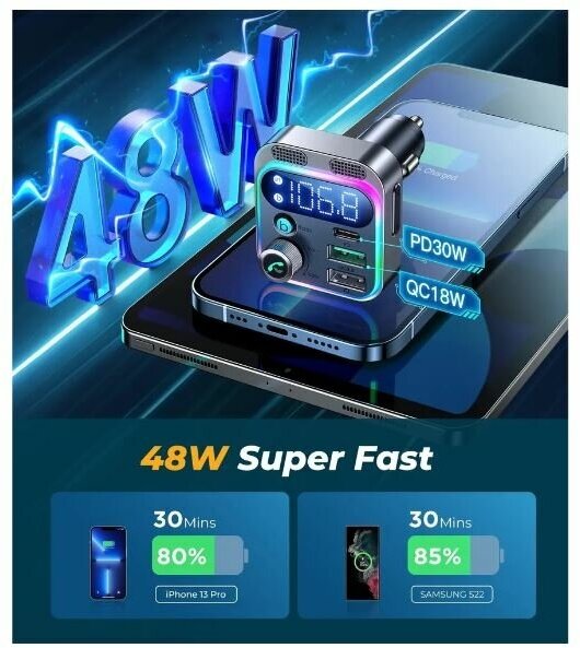 Орбита / TS-CAF120 FM-трансмиттер с bluetooth/микрофоном/ для автомобиля/ зарядник QC 3.0 для авто в прикуриватель