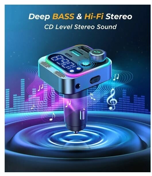 FM трансмиттер Bluetooth с RGB подсветкой / Модулятор автомобильный / Адаптер быстрой зарядки с 3 USB 3.1 A TDS-13