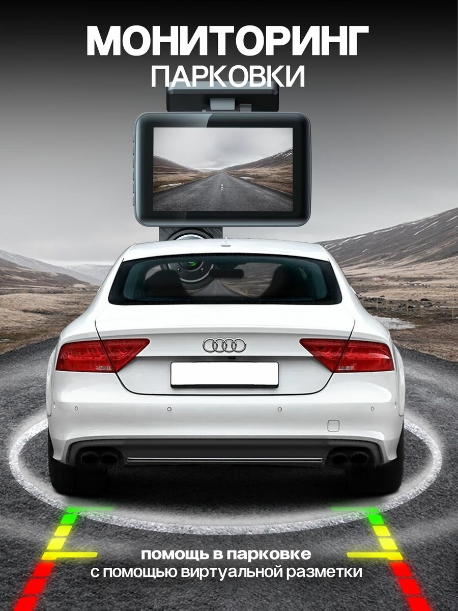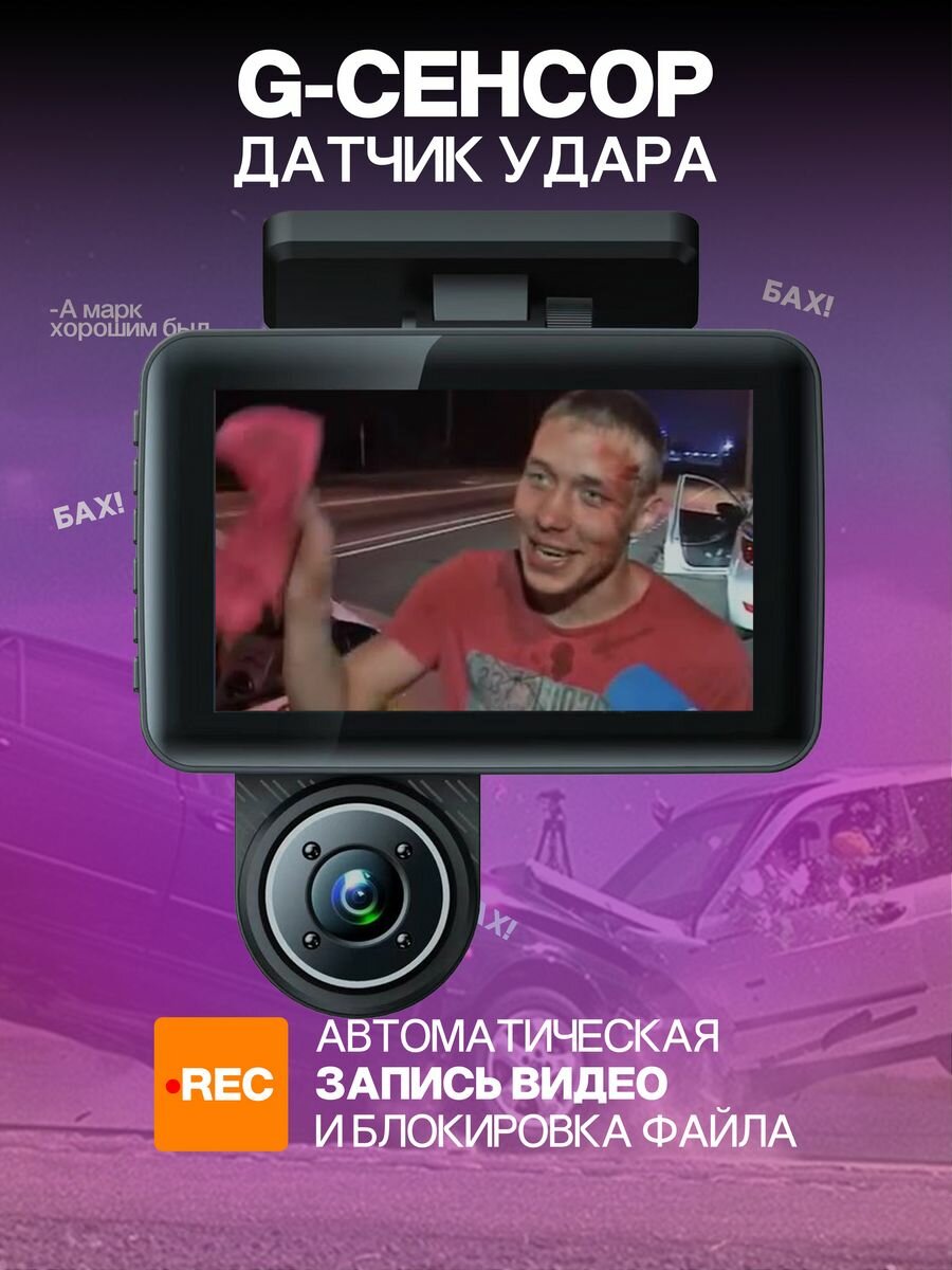 Видеорегистратор Bootleg FULL HD 1296P с 2-мя камерами /Дисплей 4``c поддержкой "изображение в изображении" /Объектив 170*/G-сенсор