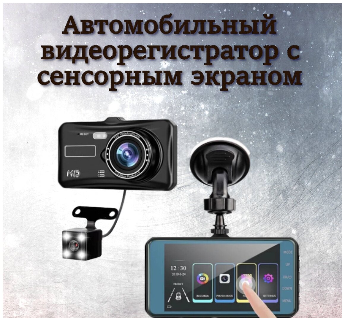 Автомобильный видеорегистратор "Full HD" с зеркалом заднего вида и двумя камерами / Сенсорный дисплей / G-сенсор