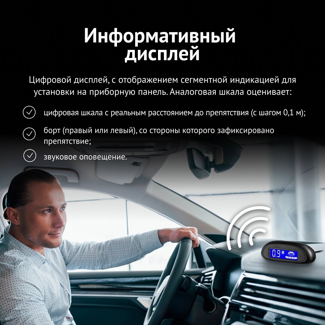 Система безопасной парковки iBOX PS 5000 (черный) / парктроники, датчики парковки на автомобиль 4 шт. с дисплеем, умная система парковки информация: