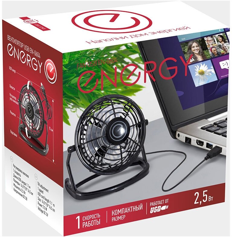 Отзывы на Вентилятор настольный 15 см от USB, черный, размеры 15*9,8*15 см, 1 скорость