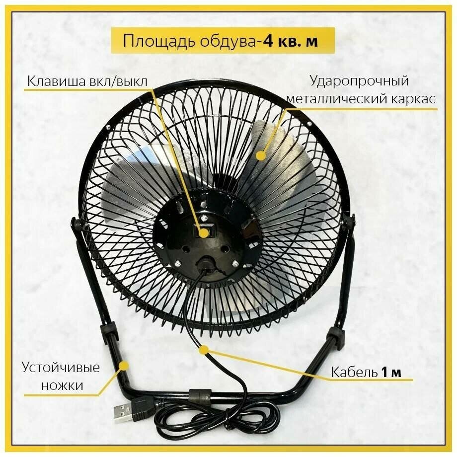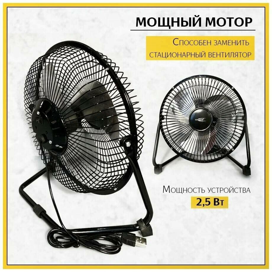 Вентилятор USB MINI FAN, настольный, 2.5 Вт, 12 см, металл, черный / Настольный вентилятор питание от USB информация: