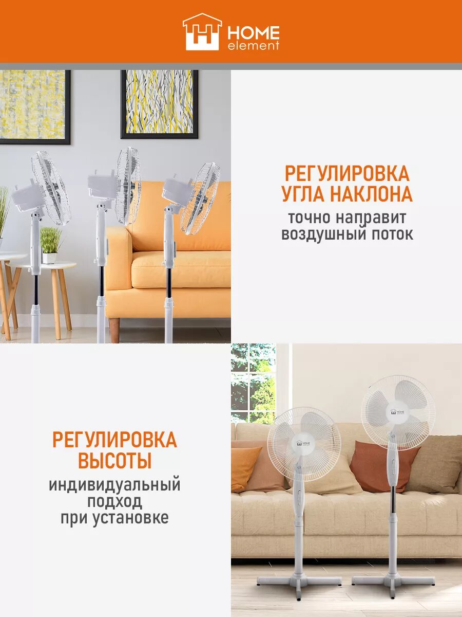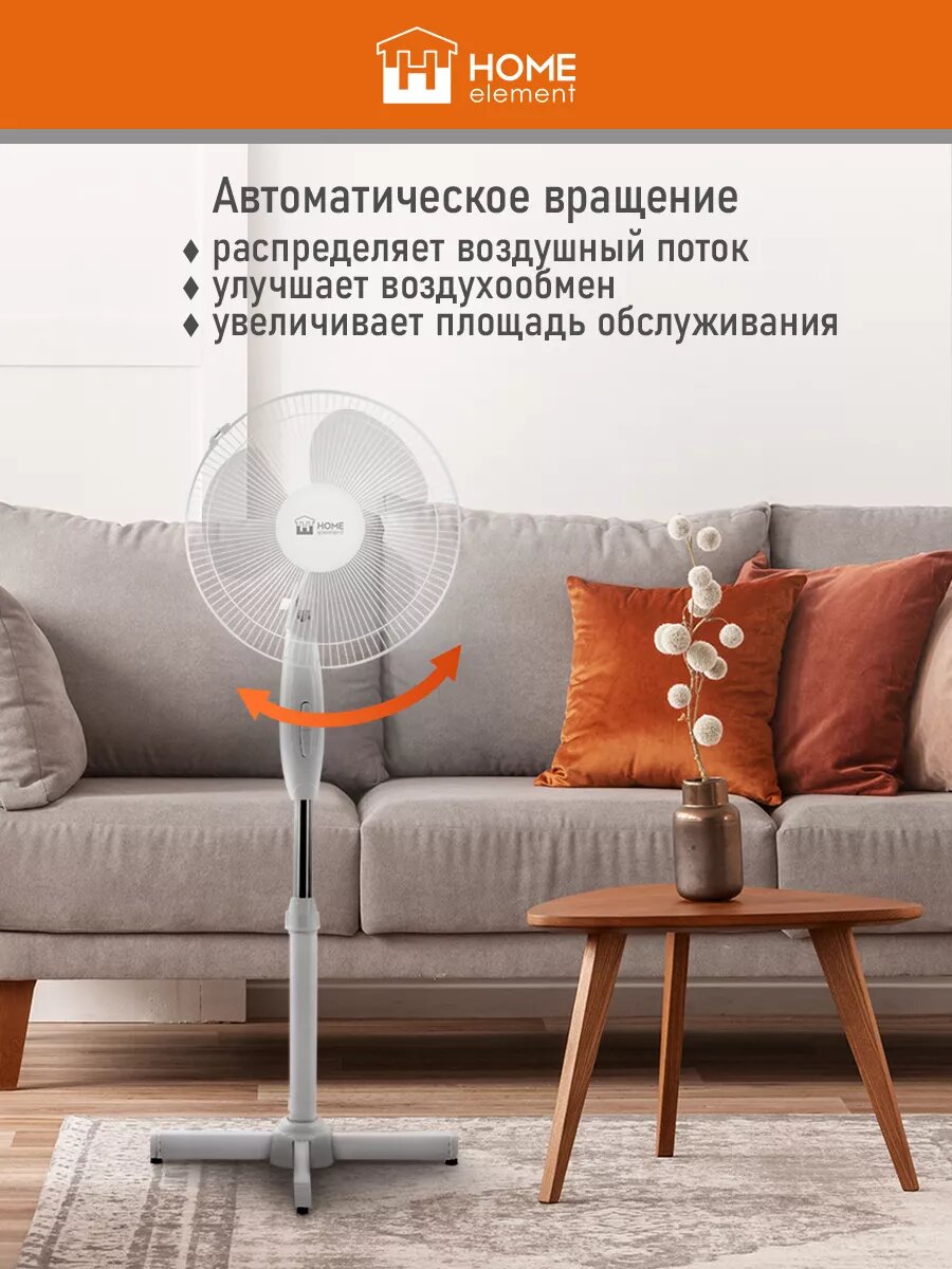 10 цен на Напольный вентилятор HOME ELEMENT HE-FN1206A белый/белый