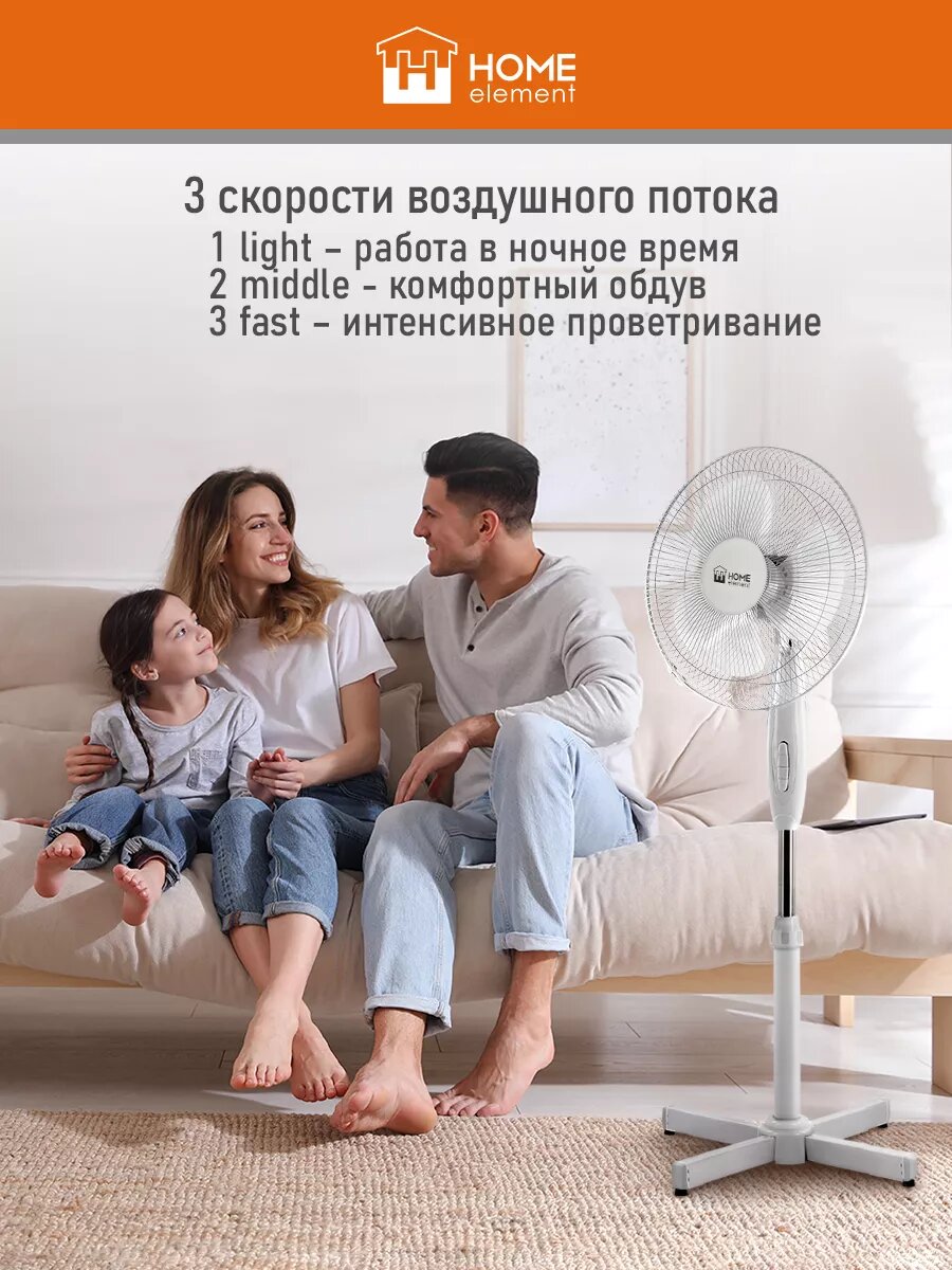 Напольный вентилятор HOME ELEMENT HE-FN1206A белый/белый информация: