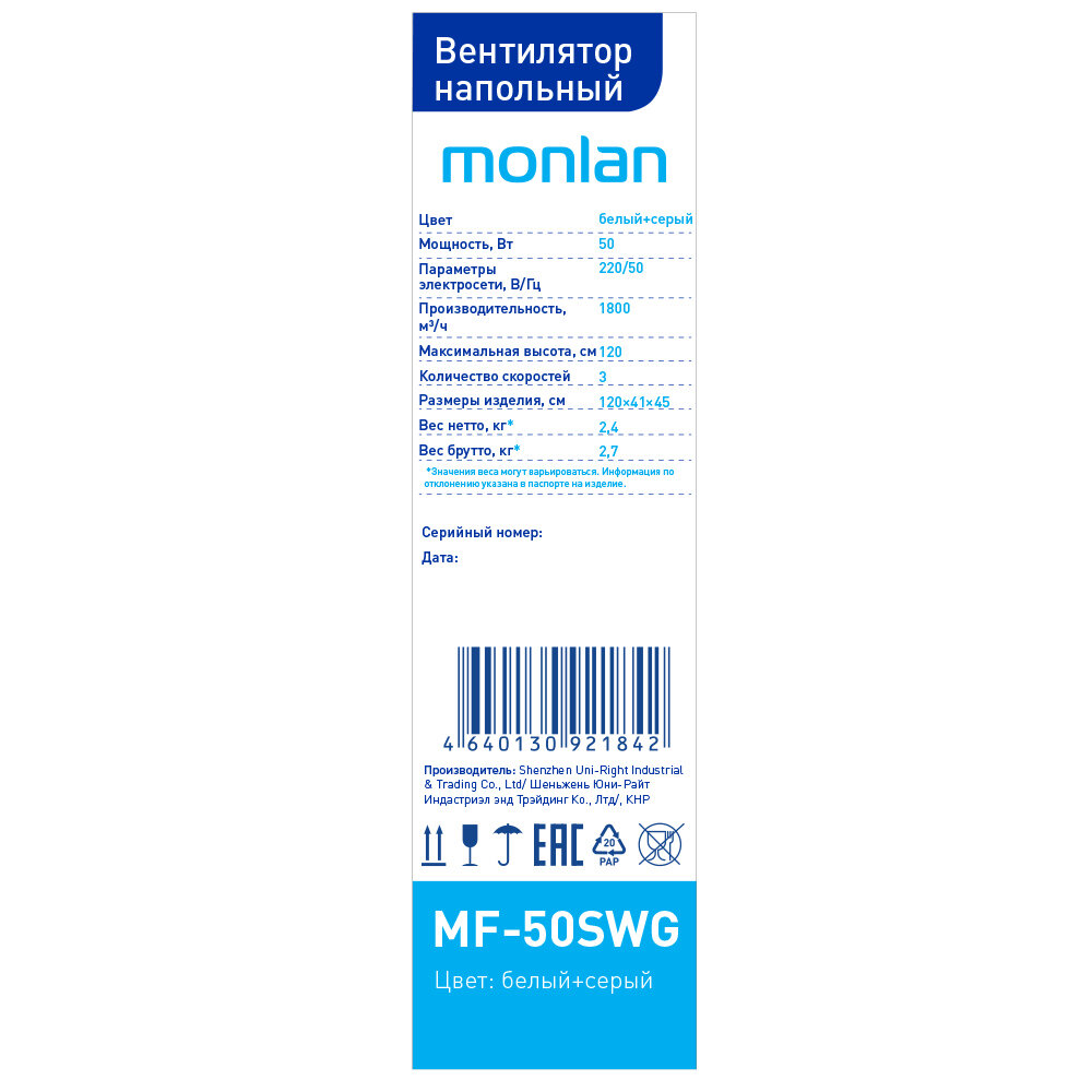 10 цен на Вентилятор напольный Monlan MF-50SWG