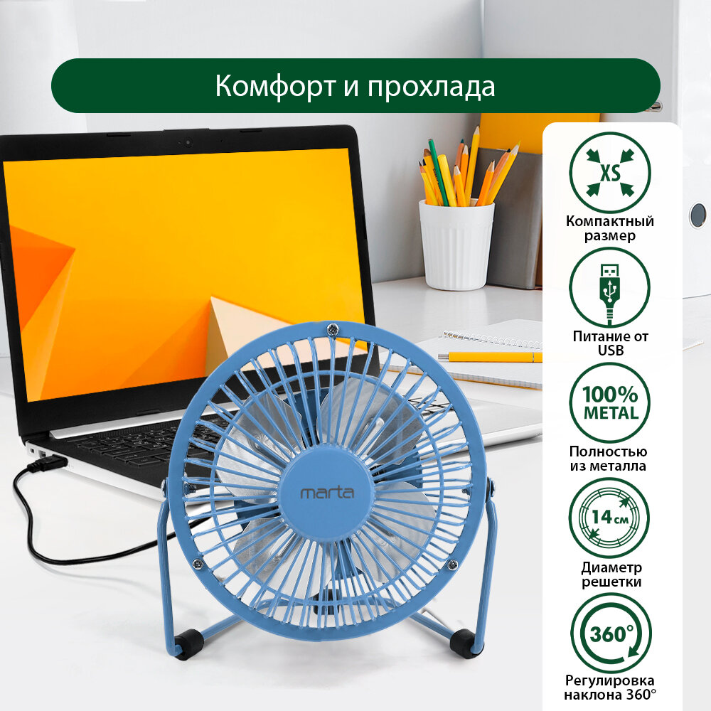 10 цен на Настольный вентилятор MARTA MT-FN2545 аквамарин