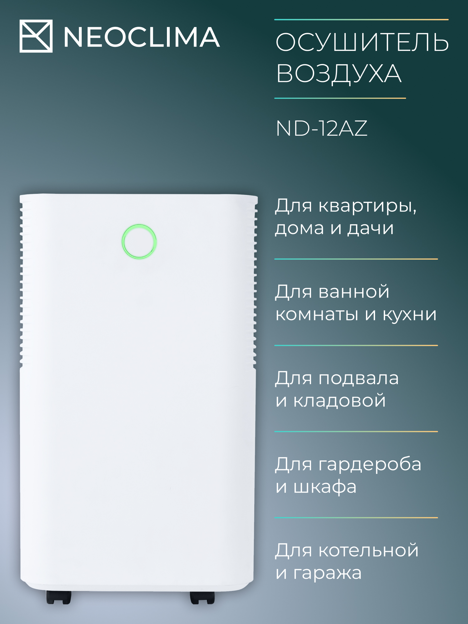 Осушитель воздуха для дома бытовой NEOCLIMA ND-12AZ, 12 л/сутки информация: