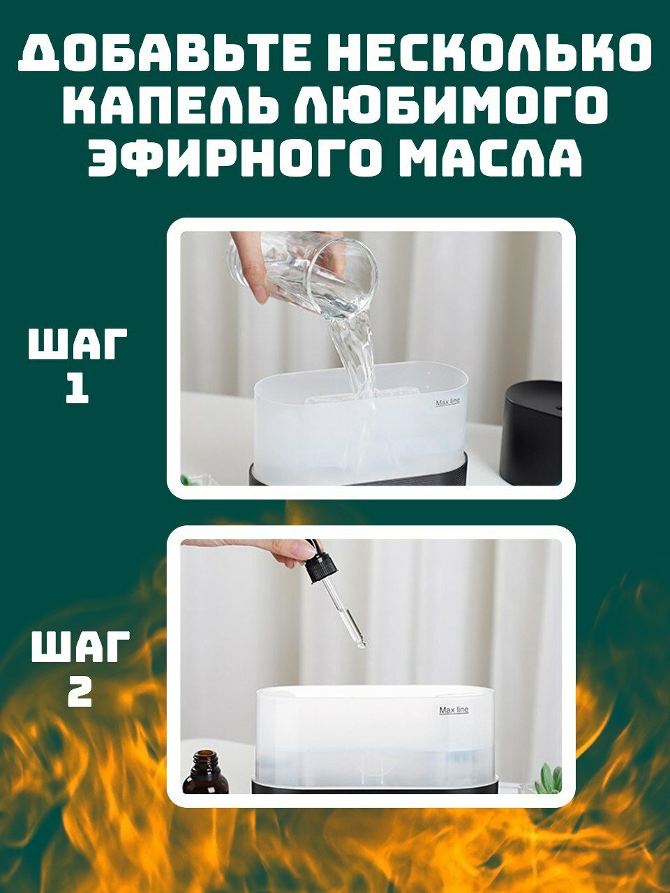Увлажнитель воздуха и аромадиффузор с подсветкой для дома, ночник с эффектом пламяни