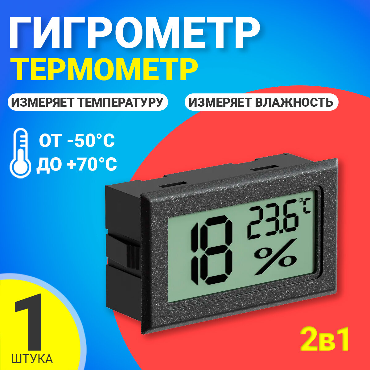 10 цен на Встраиваемый термометр с измерением влажности техметр Т-1804 (Черный)