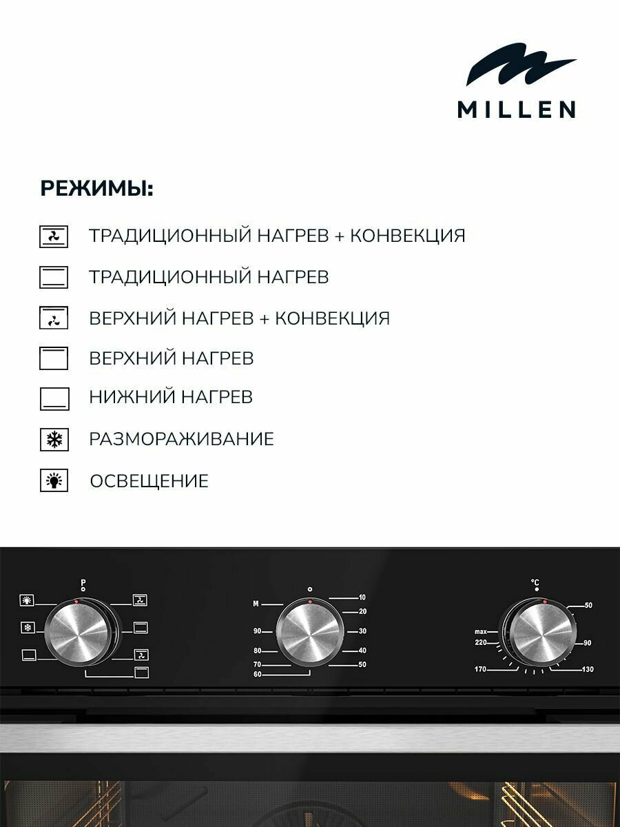 Духовой шкаф встраиваемый, электрический MILLEN MEO 6001 BL, черный информация: