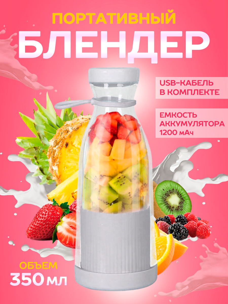Компактный блендер-бутылка/TAKE IT WITH YOU/368/380 мл/кнопка вкл-выкл/20000 оборотов в минуту/для любителей свежих коктейлей и смузи/легко мыть/белый информация: