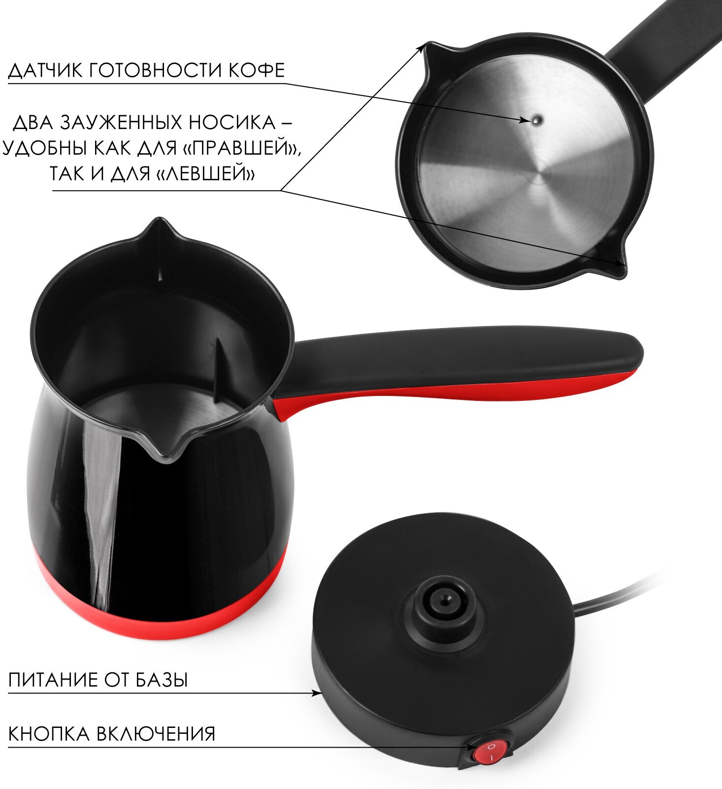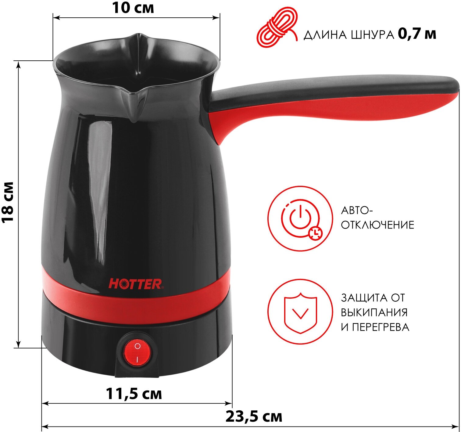 Турка электрическая HOTTER HX-002R чёрная / красная, автоотключение, 500мл информация: