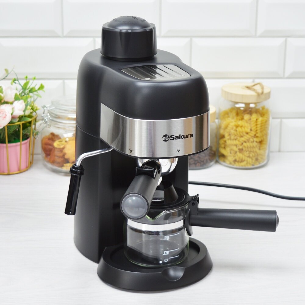 10 цен на Кофеварка Sakura SA-6115 рожковая 0,25л,4бар,800Вт.