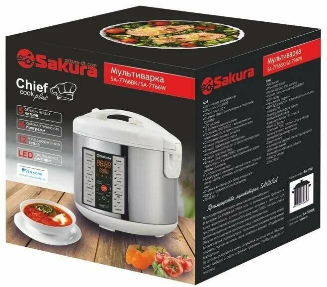 Характиристики этого товара не найдены!Отзывы на Мультиварка Sakura SA-7766W функция "Мультиповар", 16 программ, 5л 860Вт