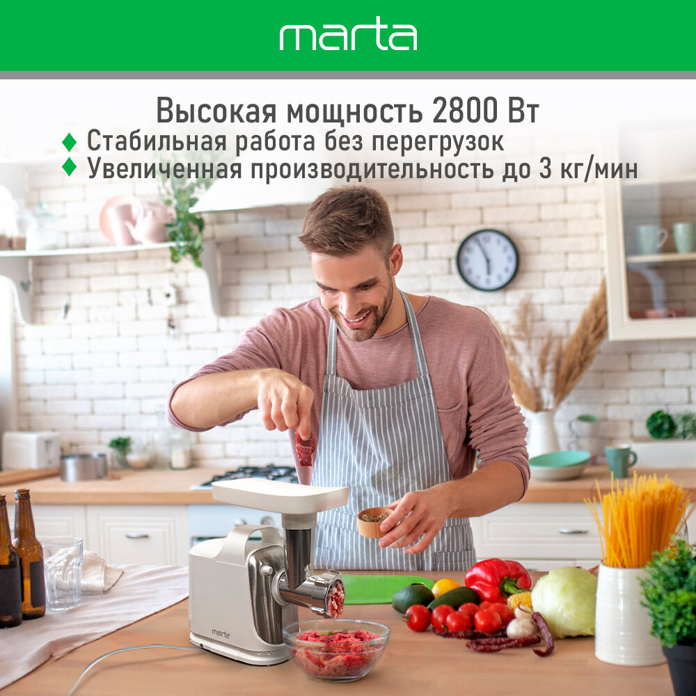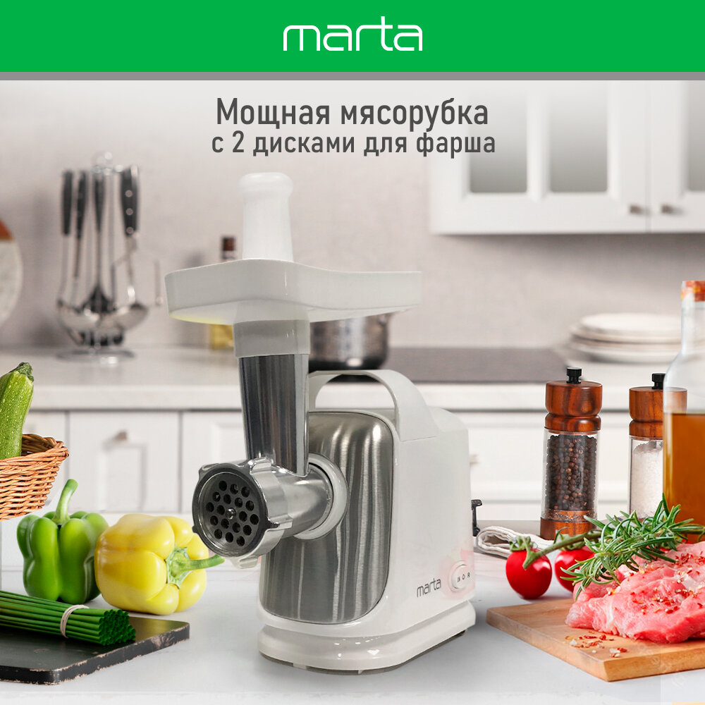Мясорубка MARTA MT-MG2018A белый жемчуг информация: