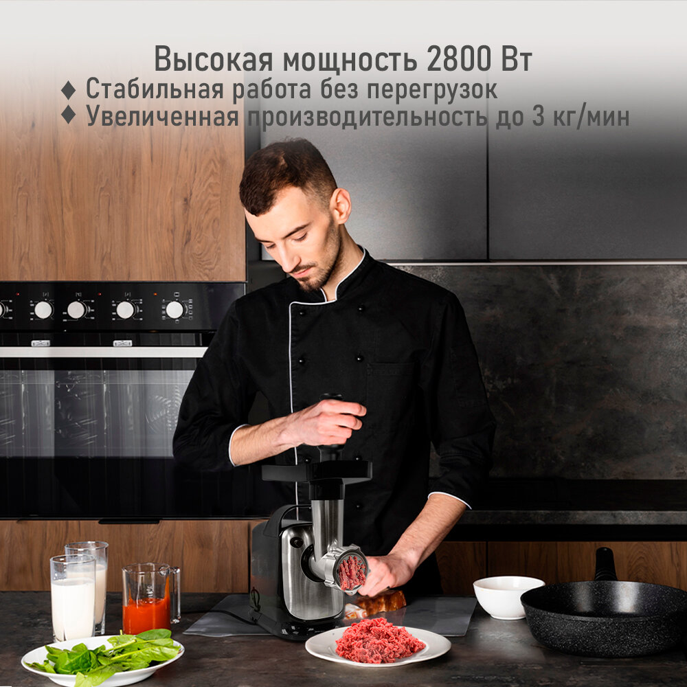 Мясорубка MI-07-G091/мощность 2000 Вт/медный двигатель/низкий уровень шума/реверс/3 диска 3,5,7 мм/алюминиевая форма