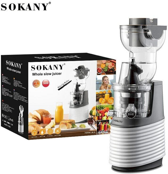 Шнековая соковыжималка /JE-32/ до 90% сока/прямой отжим/защита от перегрева/Мощность 300 Вт/белый-серый информация: