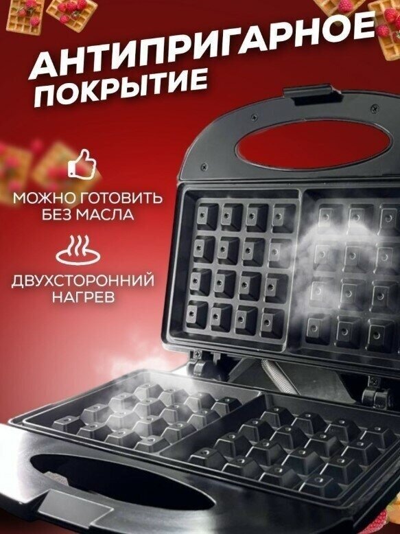 Электрическая Вафельница/Электрический мультипекарь для приготовления вафиль,орешница,гриль,индикатор нагрева,750Вт,черный информация: