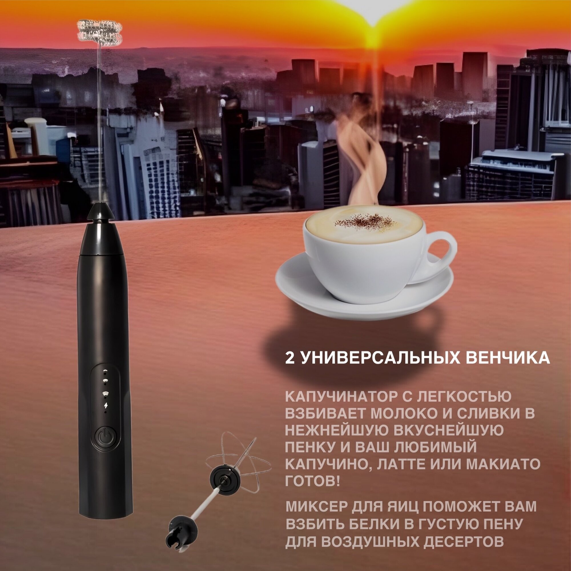 Капучинатор, Мини-миксер ручной, Вспениватель молока, USB информация: