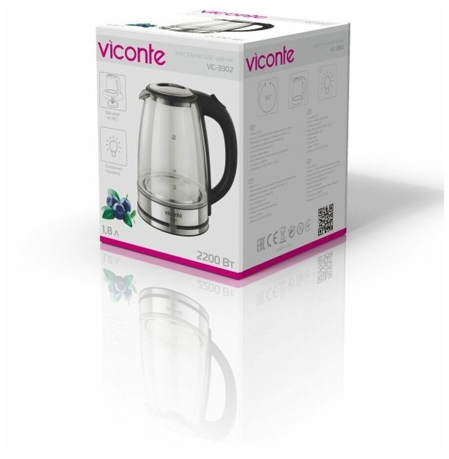 Чайник Viconte VC-3302 Ayla 2200Вт 1.8л стекло диск информация: