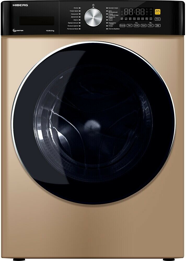 Стиральная машина с сушкой HIBERG i-WMQ8 - 10614 G, инверторная, с паром, 10,5 кг загрузка, 1400 об/мин, Золотистый