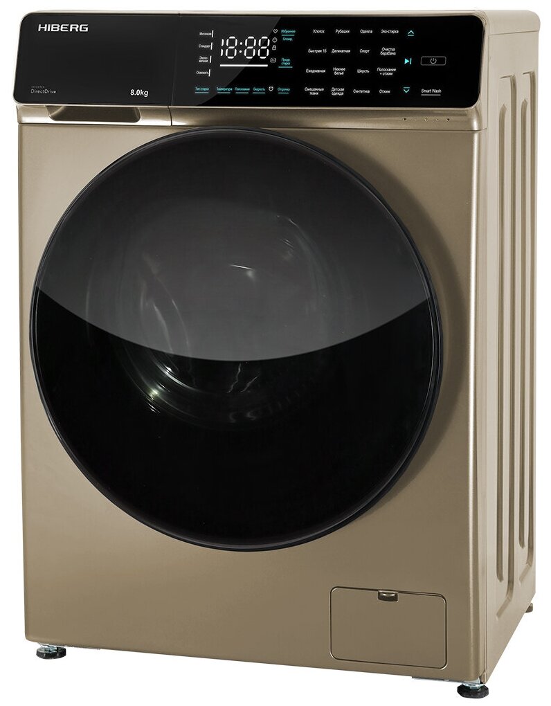 Стиральная машина HIBERG i-DDQ9 - 812 G, инверторная, 8 кг загрузка, 1200 об/мин, 16 программ, Smart wash, сенсорное управление, Золотистый