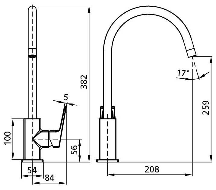 | Длина излива | 208 мм |
