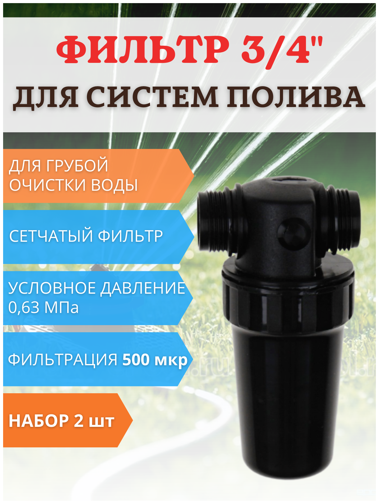 Исток Садовый фильтр грубой очистки воды для систем полива ФОВ-500 сетчатый, 2 шт информация: