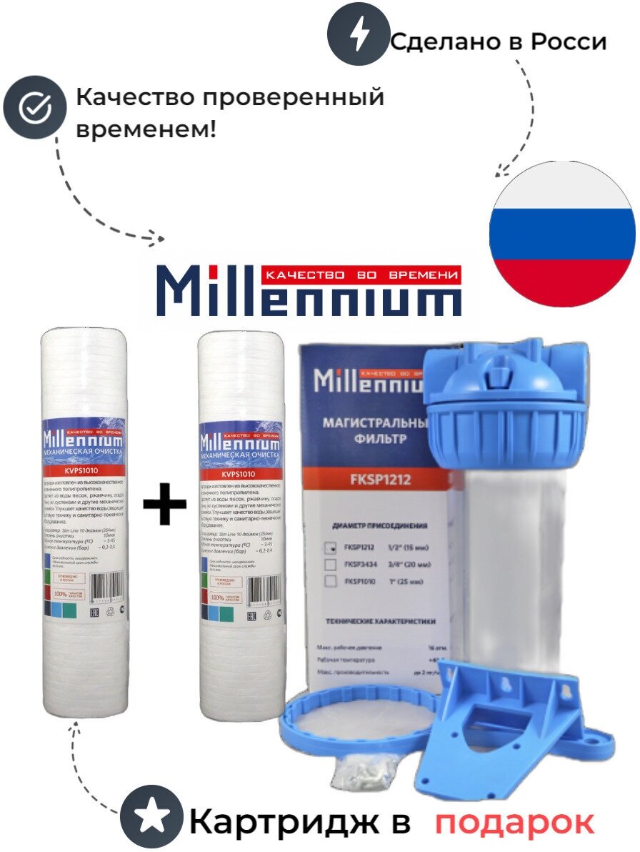 Корпус (колба) для фильтра BP-16 (2к), диаметр 1" с картриджем PP-10SL 5 мкм, корпус фильтра пластиковый / фильтр 10sl для Аквафор, Барьер, Гейзер