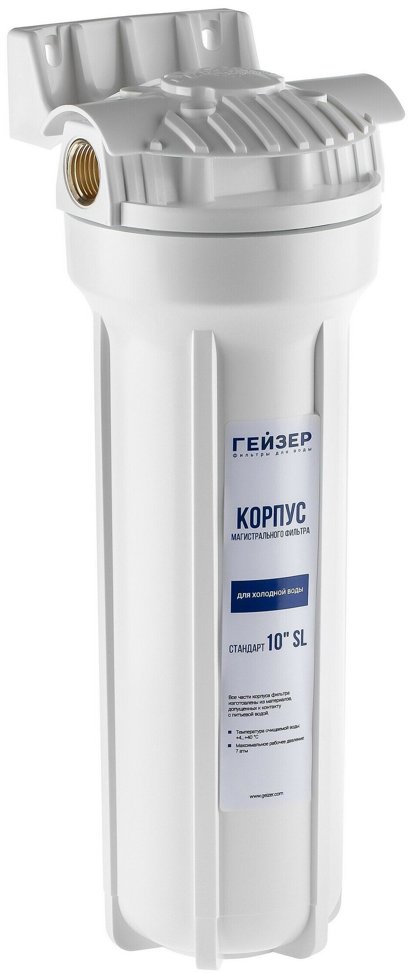 10 цен на Корпус магистрального фильтра Гейзер 10SL 1/2" белый с латунными вставками для холодной воды/Колба для фильтра Гейзер 10SL 1/2"