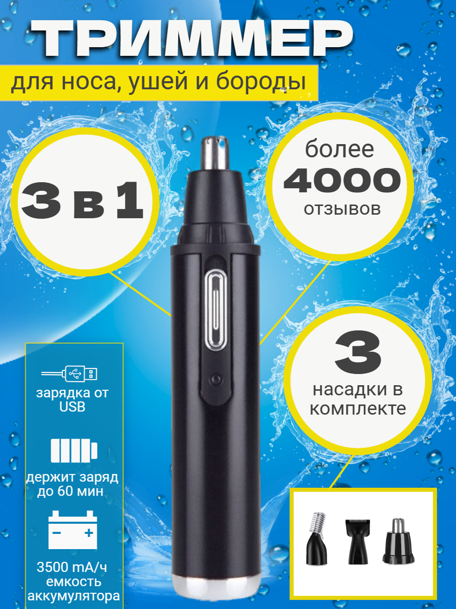 10 цен на Триммер 3в1 для носа, бровей, бороды и ушей: Черный