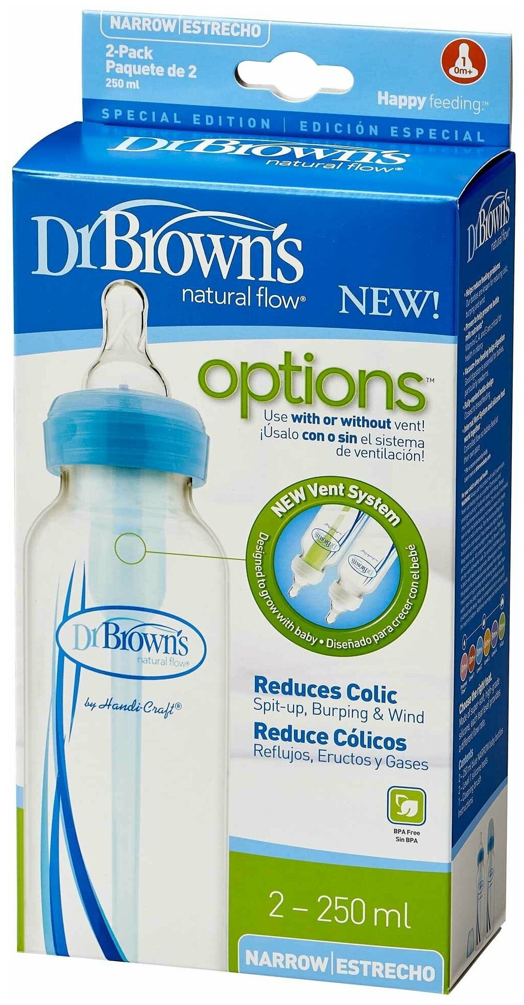 Бутылочка антиколиковая DR. Brown's с узким горлышком Синяя 2 шт 250 мл 0+ мес