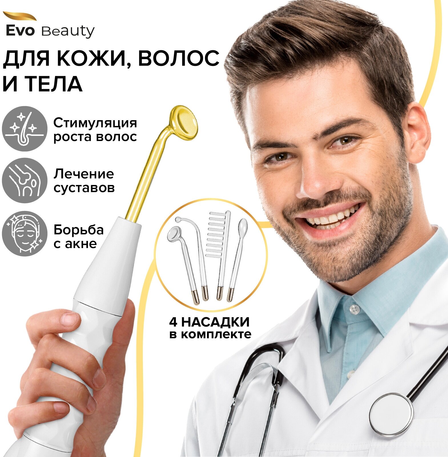 10 цен на Дарсонваль Evo Beauty Home Edition для волос, от морщин, для лица и для тела. Профессиональный уход