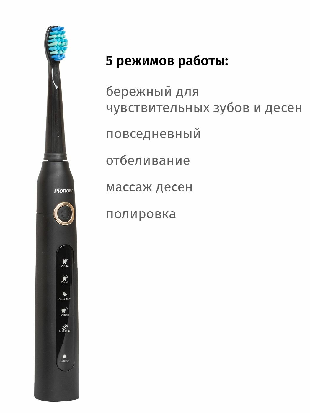 Электрическая зубная щетка Pioneer с водонепроницаемым корпусом IPX7, 5 сменных насадок, USB кабель, 5 режимов информация: