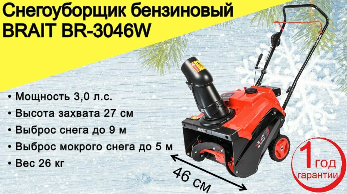 Снегоуборщик бензиновый BRAIT BR-3046W, 3 л.с. информация: