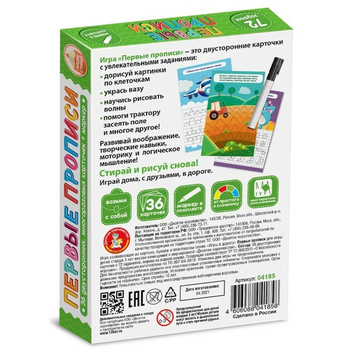 Развивающая игра «Пиши-Стирай. Первые прописи» информация: