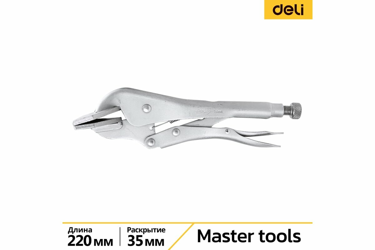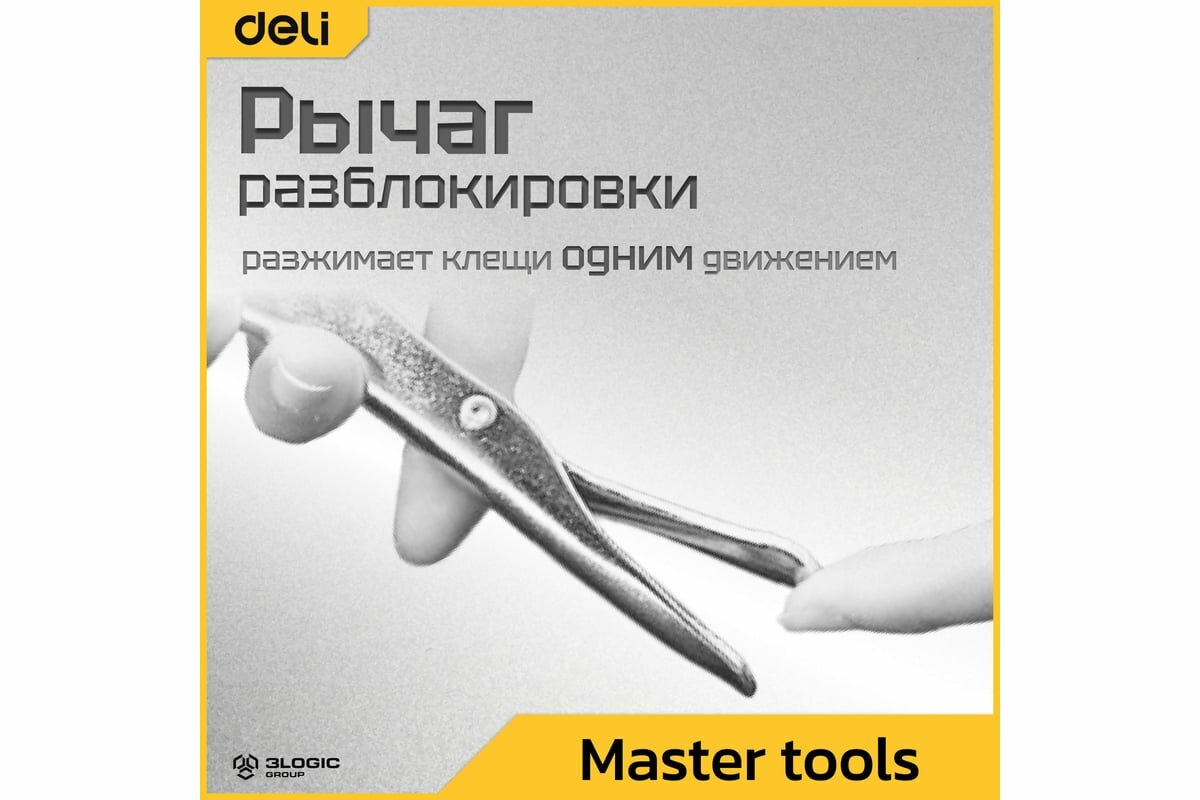 10 цен на Зажимные клещи с плоскими губками с фиксатором Deli DL20016 250мм (регулировочный винт,углеродистая сталь)
