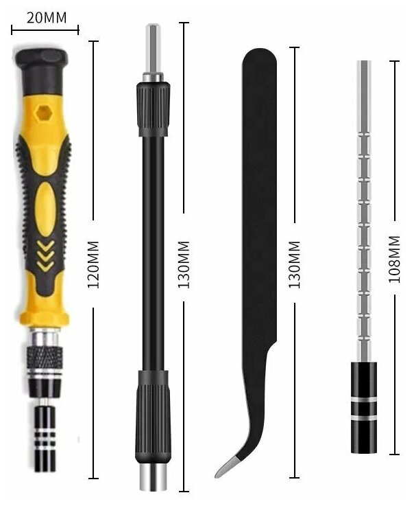 Набор отверток и бит 115 в 1 в кейсе / многофункциональный универсальный набор отверток для точных работ с гибких удлинителем, желтый информация: