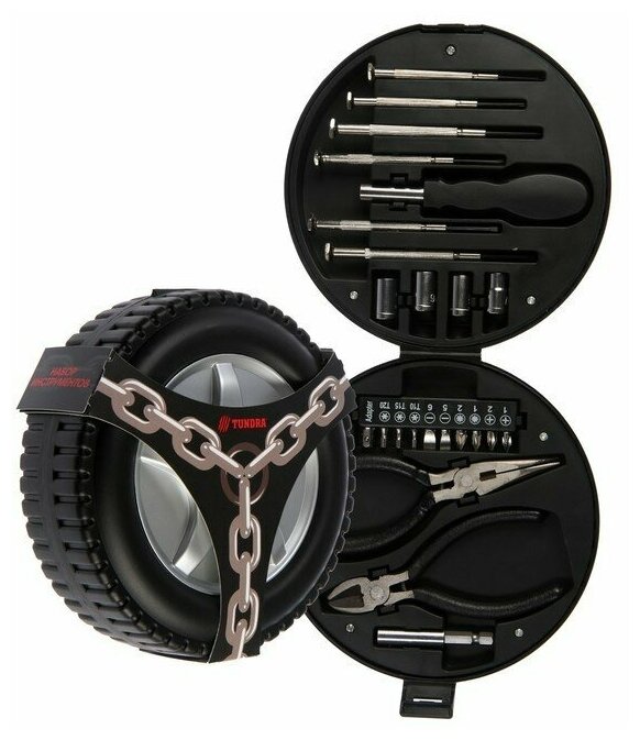 Набор инструментов тундра, подарочный пластиковый кейс "Колесо", 24 предмета 7379042 информация: