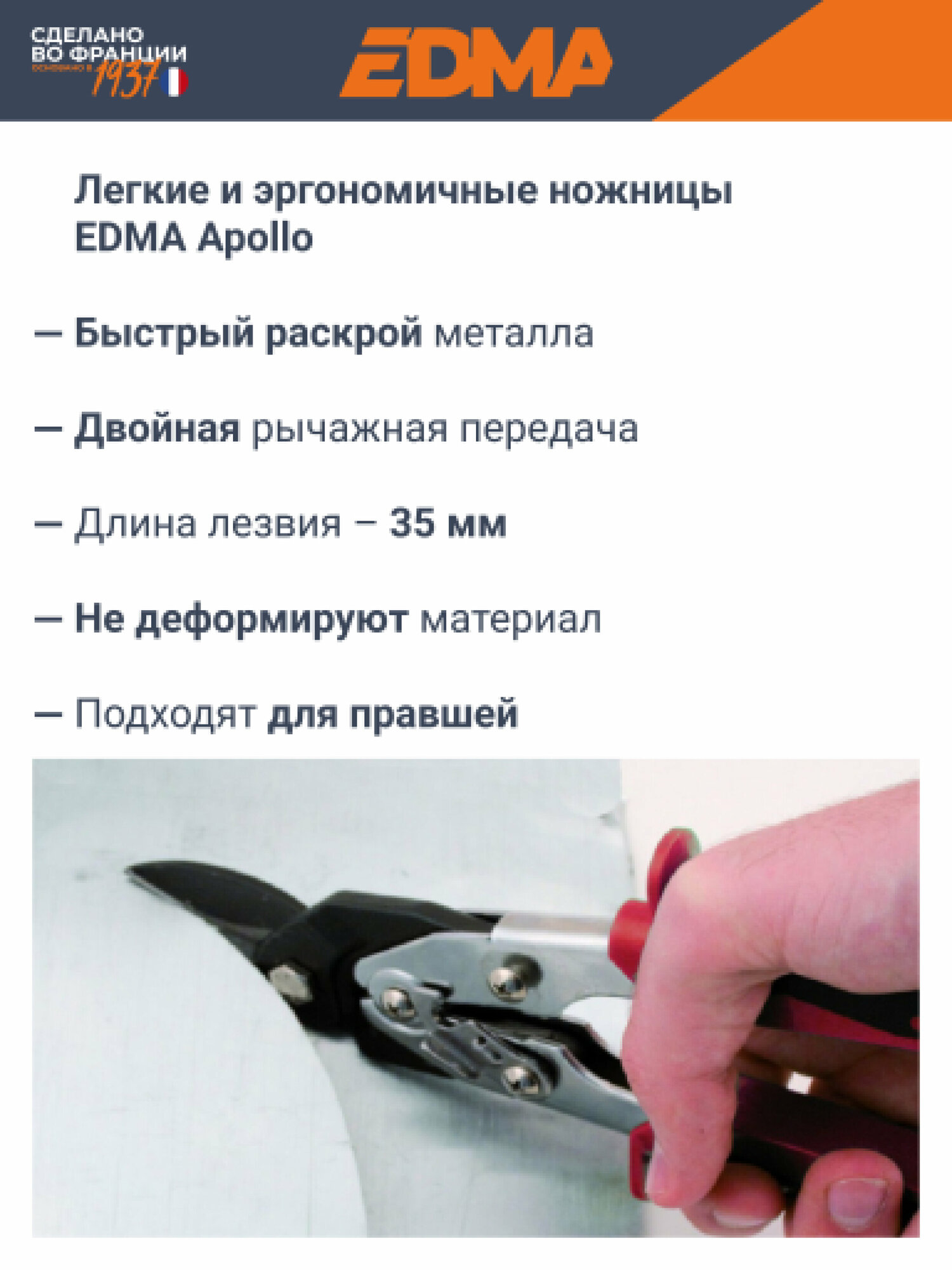 Кованные "авиационные" ножницы по металлу EDMA Apollo, левый рез информация: