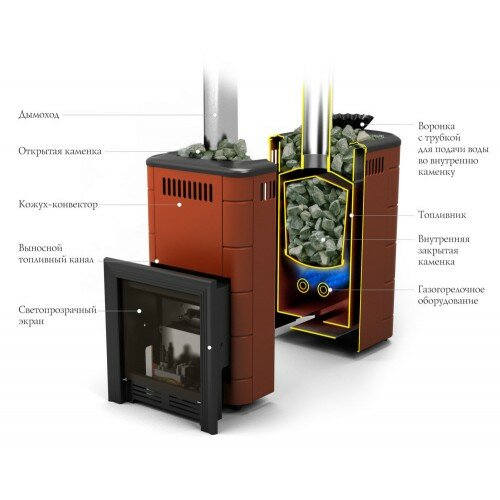 Газовая печь для бани Ермак "Уралочка-16", дымоход, мощность 16кВт, 16м³