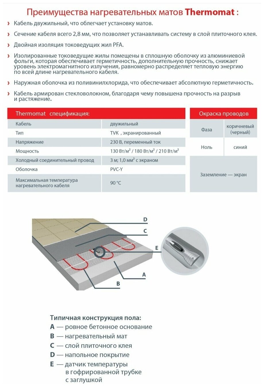 Нагревательный мат Thermomat TVK-180 (2,5 кв. м) информация: