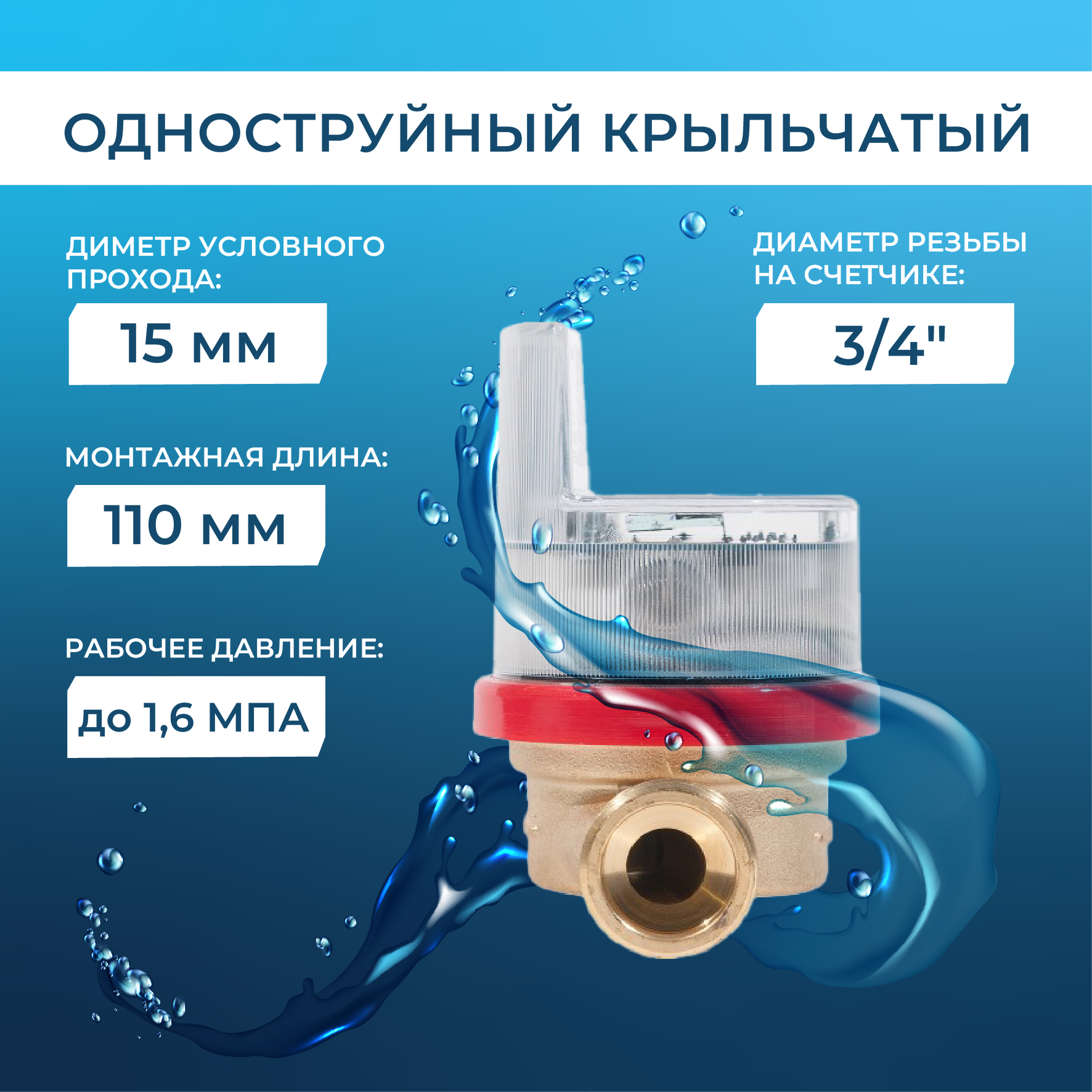 Счетчик холодной и горячей воды С-300M "Байкал"-15-М-110-С-И