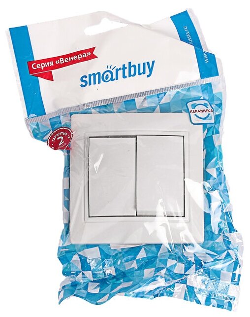 Отзывы на Выключатель SmartBuy 2-клавишный 10А белый, керамика "Венера" (SBE-01w-10-SW2-0-c)